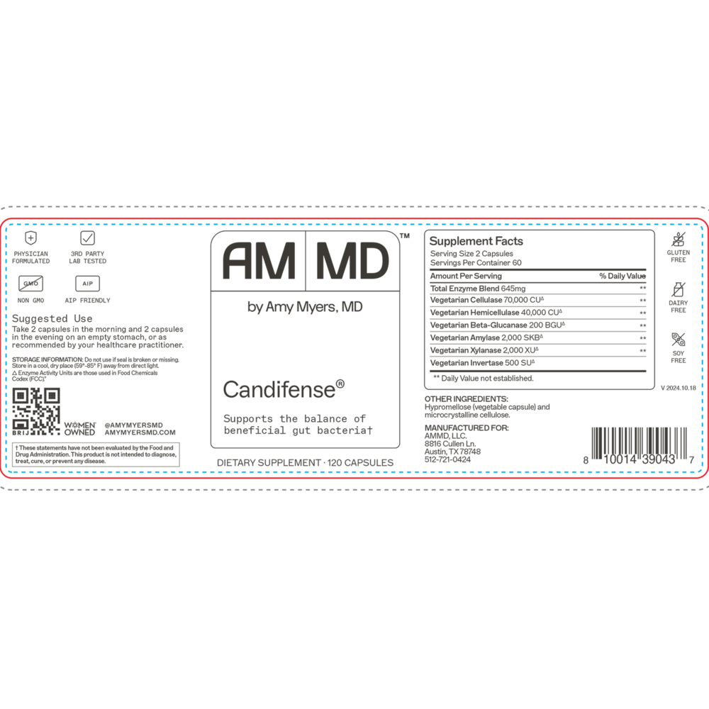 Safe, gentle, and effective, physician-formulated Candifense® is a broad-spectrum, biofilm-disrupting, comprehensive enzyme formula designed to create an inhospitable environment for Candida yeast overgrowth in the intestines and colon.