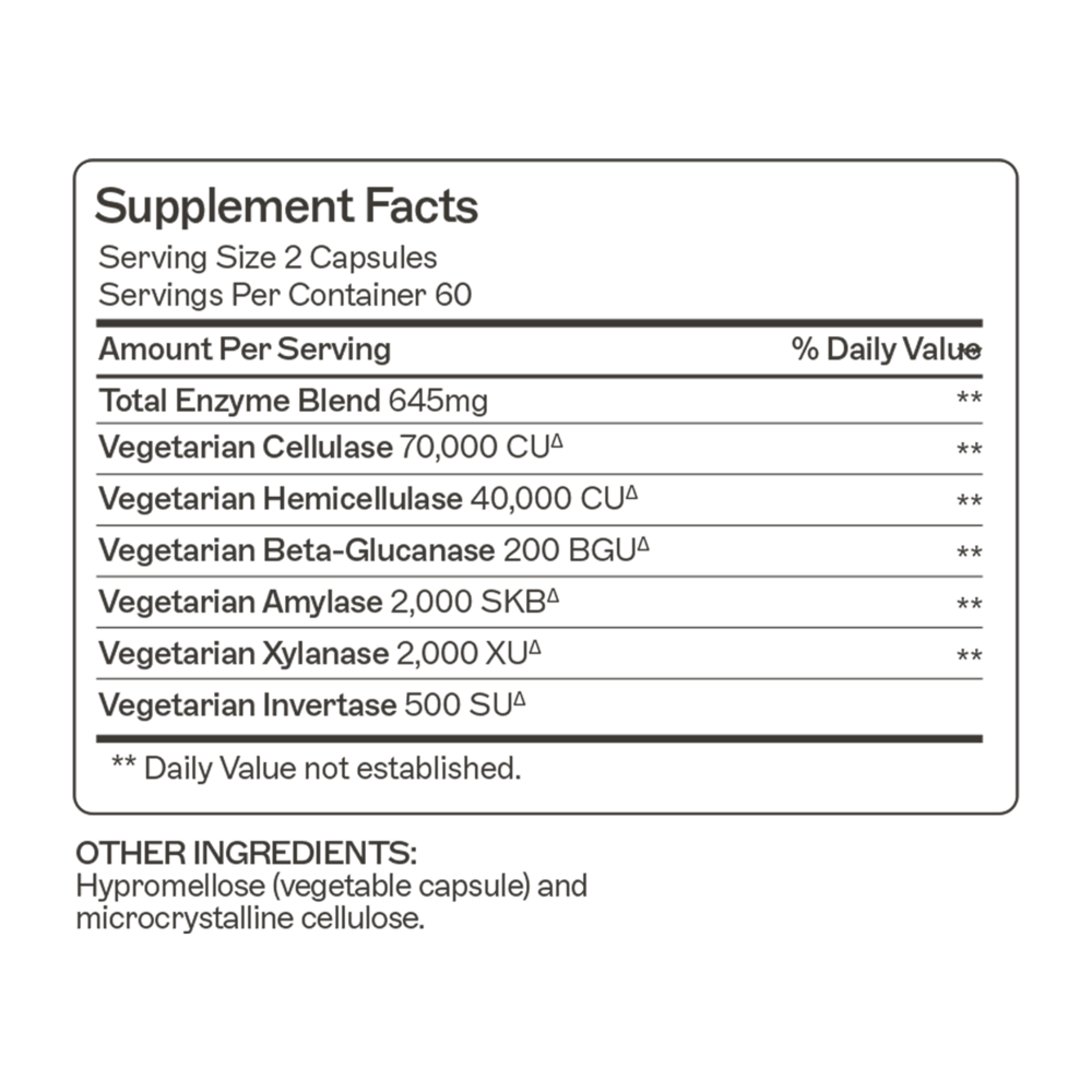 • A powerful blend of potent plant based enzymes; entirely free of herbal ingredients