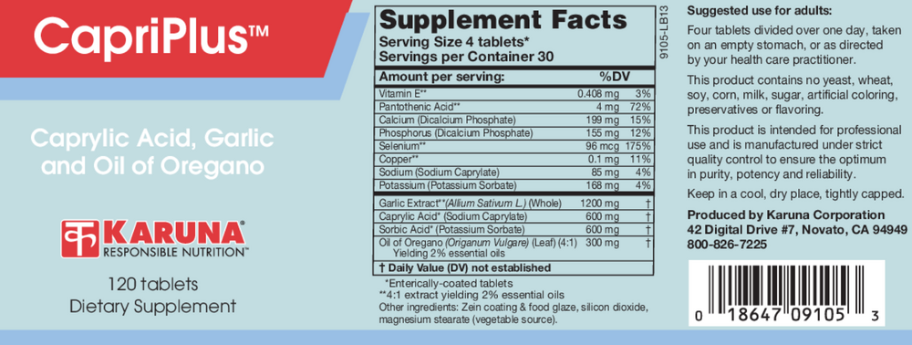 CapriPlus is a complex providing a broad spectrum of high potency nutrients to support a healthy balance of Candida albicans.* CapriPlus tablets are enterically coated for optimal intestinal release and patient compliance.