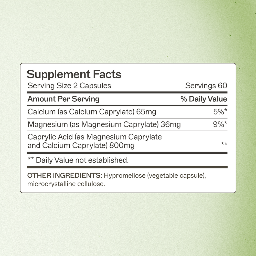 Caprylic Acid - A short-chain fatty acid that promotes the ideal environment for beneficial probiotic bacteria†.