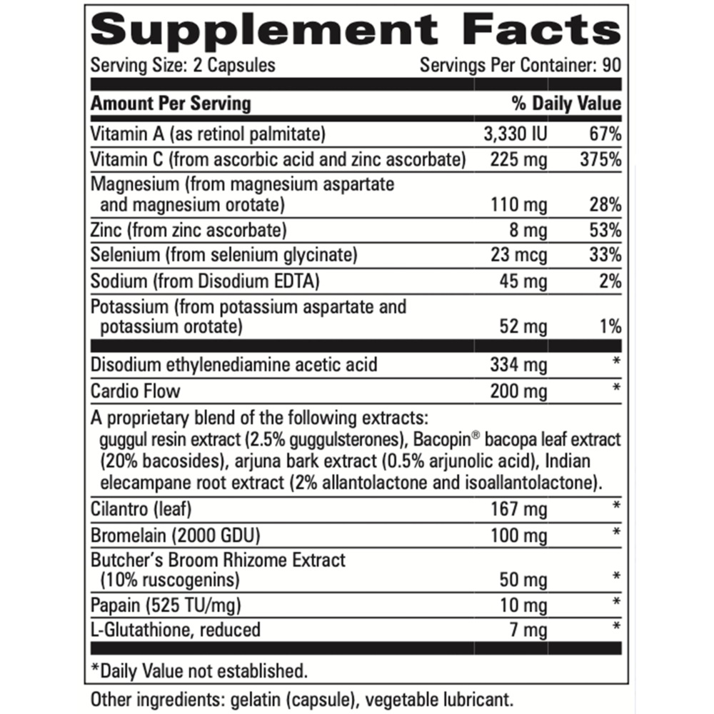 Cardio Flow™ is a unique, botanically-based cardiotonic. Cardiotonics are substances that have an invigorating effect on the heart. This formula uses the amino acid EDTA (ethylene diamine tetra-acetic acid) along with a proprietary blend of Ayurvedic herbs as well as other synergistic nutrients and herbs to support blood vessels.