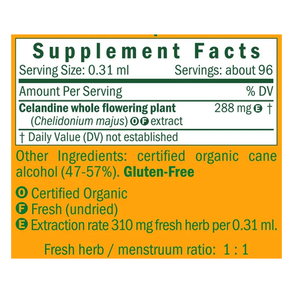 Herb Pharm prepares Celandine extract from fresh (never dried) flowering herb and root of Certified Organic Chelidonium majus plants grown on their own farms in southern Oregon. The plants are harvested while in full flower, then promptly extracted while still fresh and succulent.