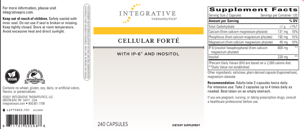 Cellular Forté with IP-6® and Inositol provides support for the immune system.* One molecule of IP-6 plus one molecule of inositol yield two molecules of IP-3. The combination helps support natural killer-cell activity.*