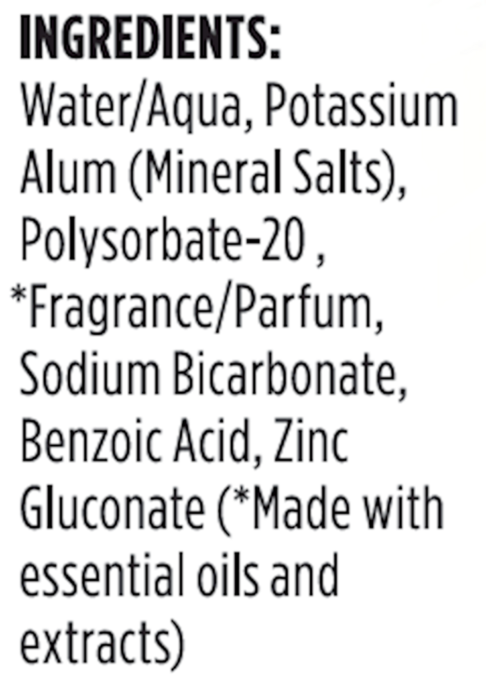 Crystal deodorant™ spray, infused with the replenishing aromas of chamomile and green tea, rapidly dries to provide an invisible, protective barrier that blocks odor before it starts. Ideal for both men and women, this highly effective spray prevents odor without harsh chemicals. Crystal touch-free spray allows for easy application-without touching or rubbing. Prevents body odor for up to 24 hours. Dermatologist tested.