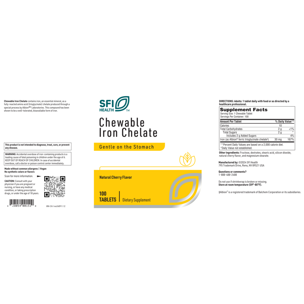 Formulated for enhanced absorption, this convenient chewable tablet option contains Ferrochel® chelated iron, an exceptionally well-tolerated and mild-tasting form of this essential mineral. Unlike most iron preparations, it is gentle on the stomach and non-constipating.* Safe for use in adults, teenagers, and pregnant and lactating women when there is a demonstrated requirement for iron supplementation. This potent iron supplement supplies 30 mg of elemental iron. Perfect for individuals that have a difficult time swallowing capsules. Made with non-GMO and Kosher ingredients