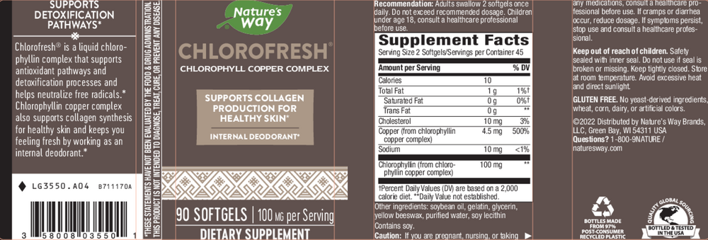 Chlorofresh® is a concentrated chlorophyll complex from premium botanicals that reduces digestive tract odors.*