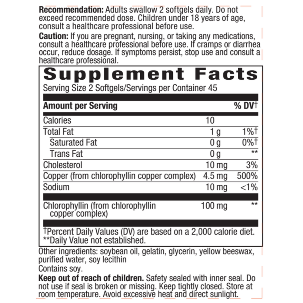 Concentrated chlorophyll complex that reduces digestive tract odors.*