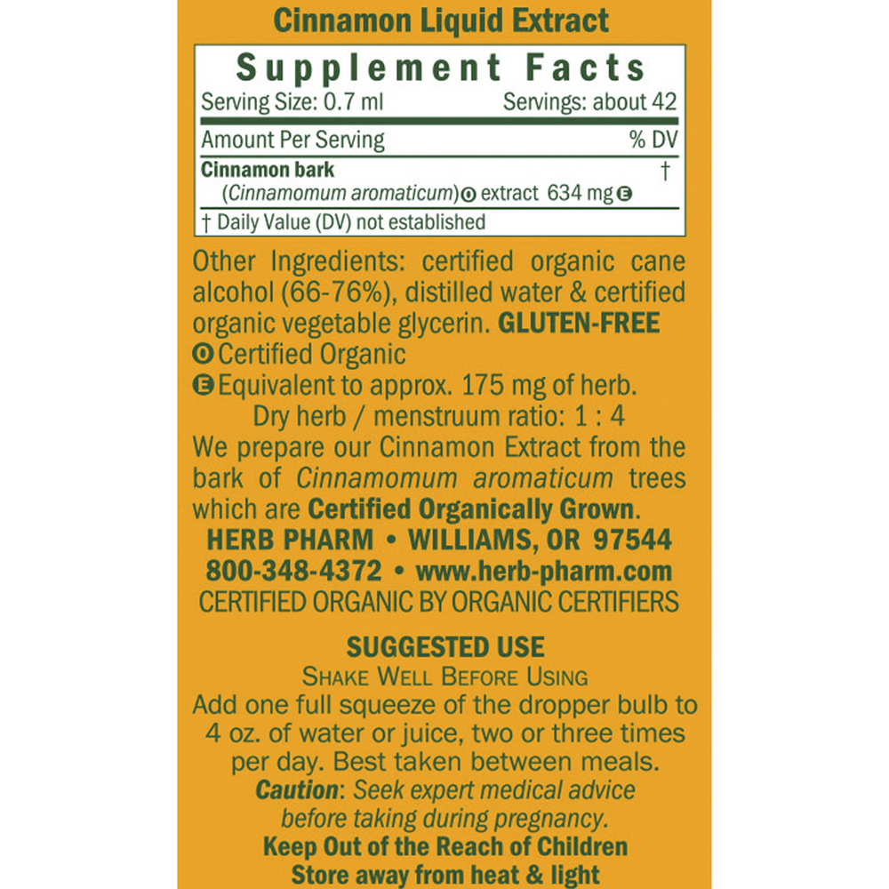 Herb Pharm prepares its Cinnamon extract from the bark of Certified Organic Cinnamomum aromaticum trees. To assure thorough extraction of Cinnamon’s aromatic oils and resins, the bark is harvested and carefully shade-dried before the meticulous extraction process.