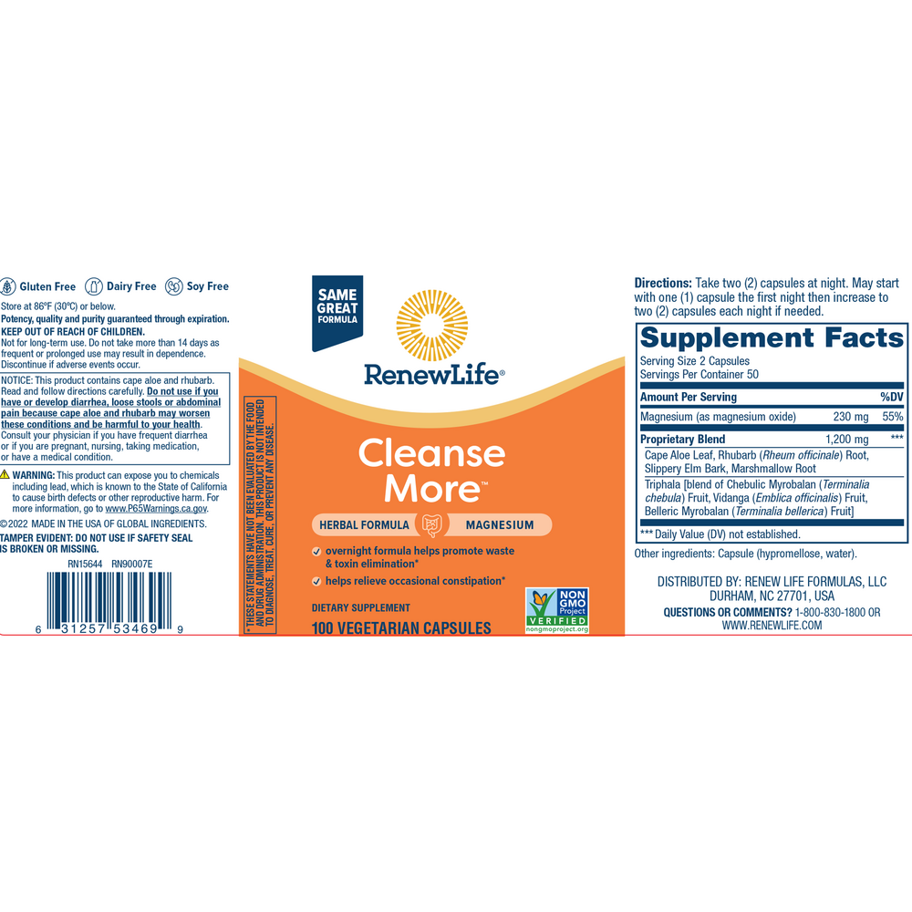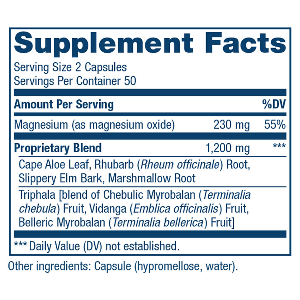 CleanseMORE™ easy-to-swallow capsules contain natural ingredients for relief of occasional constipation.*