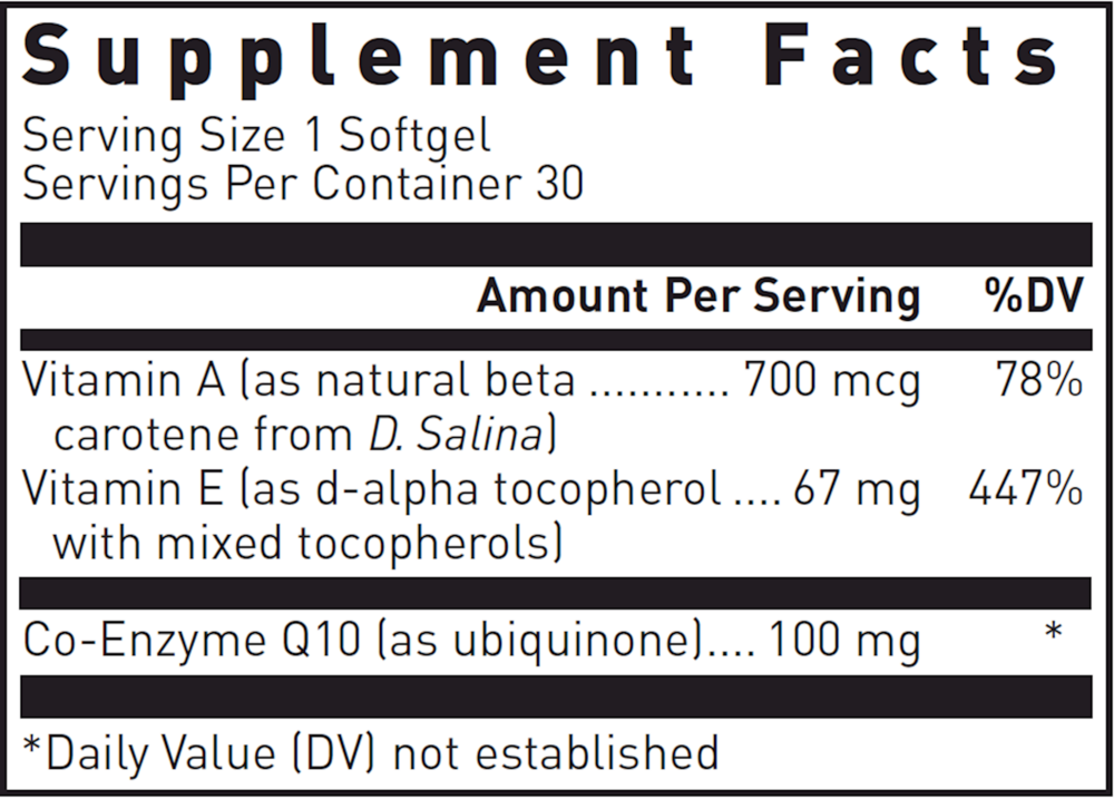 Co-Q10 softgel with Beta-carotene and Vitamin E