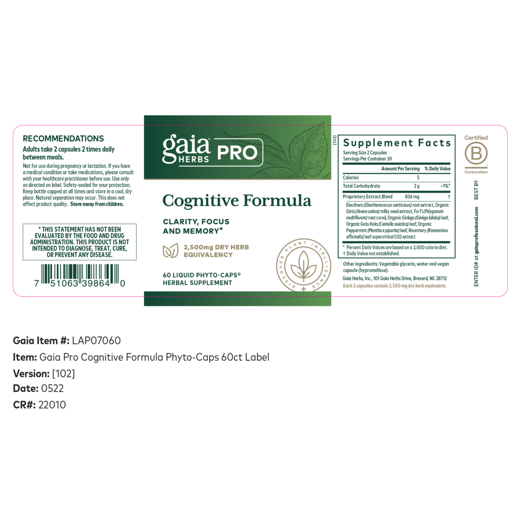Lack of focus and distractibility can make everyday activities a struggle. Cognitive Formula helps support the cognitive functions of the brain with concentrated herbal extracts that support memory, concentration, and clear thought.* The inclusion of plant-based antioxidants additionally helps support the integrity of vessels that deliver blood to the brain.*