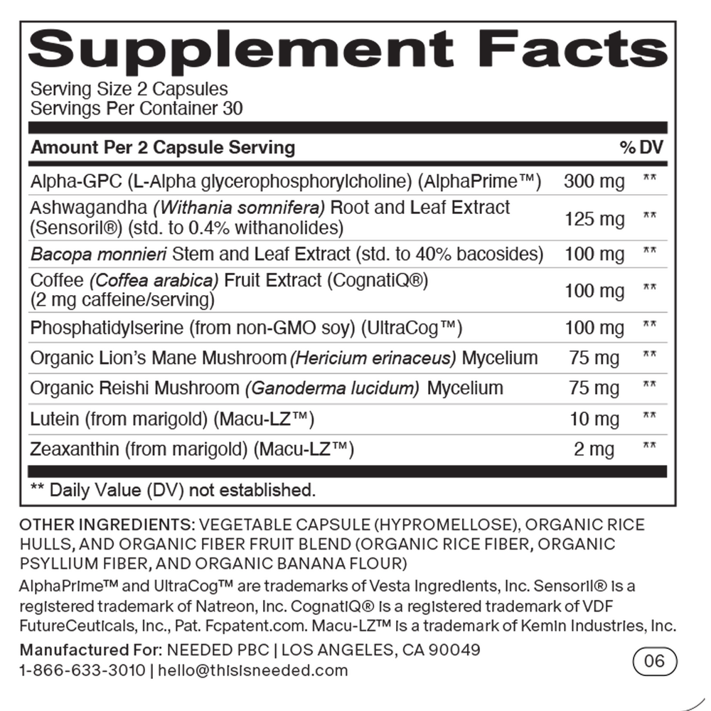 Phosphatidylserine (from non-GMO soy) (UltraCog™) ... 100 mg