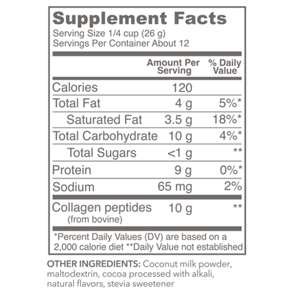 Organic Coconut Milk Powder: Our Vanilla Collagen Creamer™ supplement includes 9g of healthy fats from organic coconut milk powder. FYI: Coconut is an excellent source of Medium Chain Triglycerides (MCTs).
