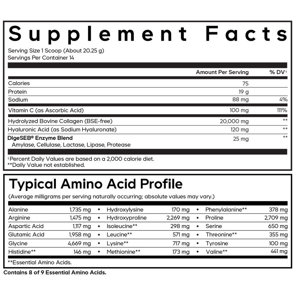 • This hydrolyzed collagen powder contains 20g of grass-fed collagen types 1 & 3 per serving.