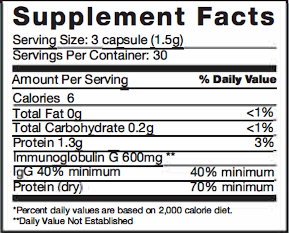 Colostrum 70/40 minimum of 70% immune-supportive proteins including 40%IgG. The highest quality colostrum available. Colostrum 70/40 contains a minimum 40% of the immune factor igG, providing optimal immune defense.