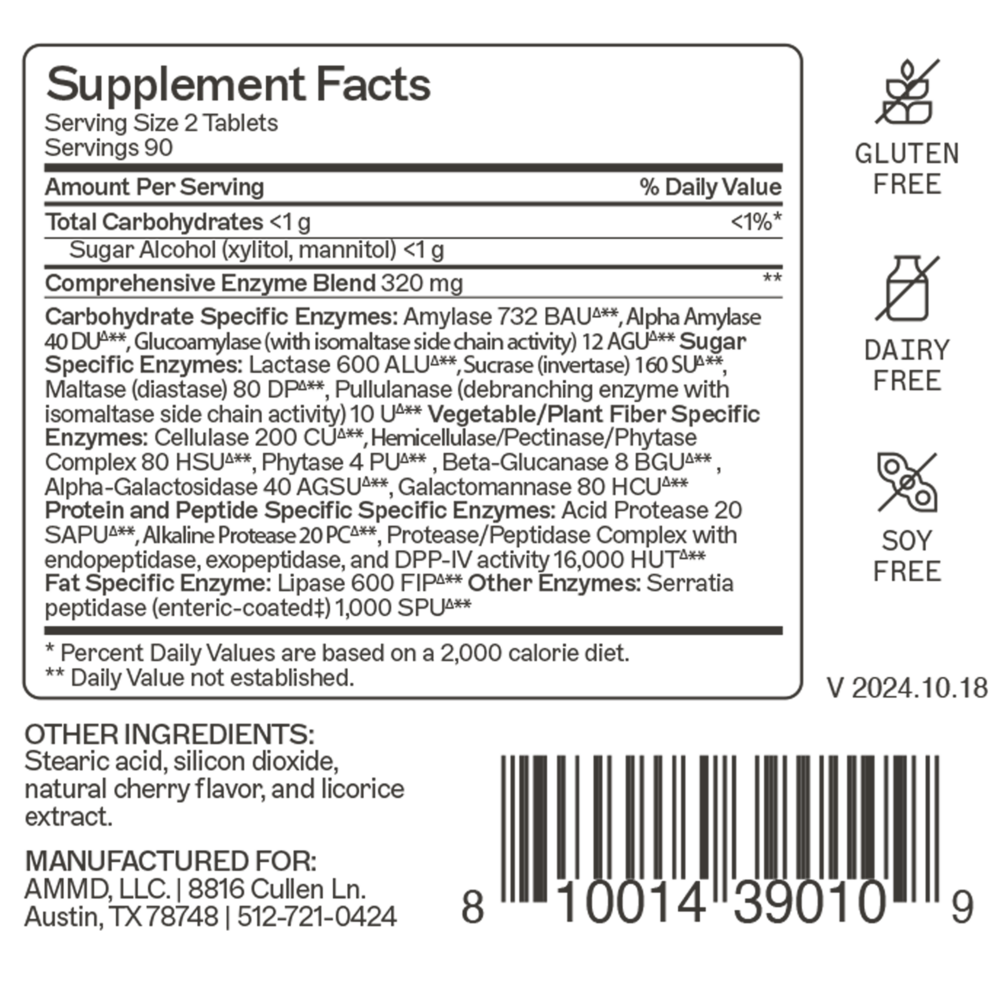 Offers a comprehensive blend of enzymes to help break down peptides, proteins, carbohydrates, sugars, lipids/fats, and vegetable fiber*