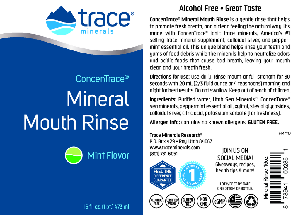 ConcenTrace® Mineral Mouth Rinse is a gentle rinse that helps to promote fresh breath and a clean feeling the natural way. It’s made with ConcenTrace® ionic trace minerals, America’s #1 selling trace mineral supplement according to SPINS data, colloidal silver, and peppermint essential oil. This unique blend helps rinse your teeth and gums of food debris while the minerals help to neutralize odors and acidic foods that cause bad breath, leaving your mouth clean and your breath fresh.