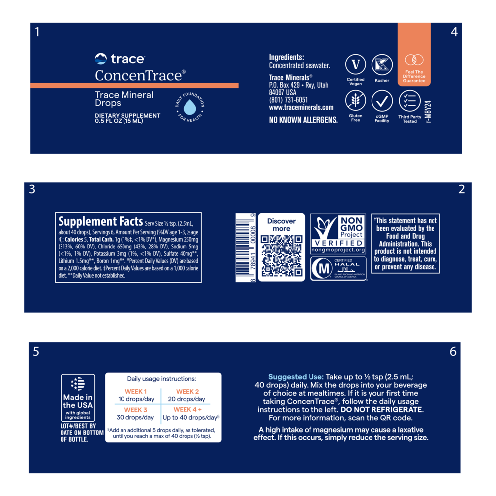 ConcenTrace® Trace Mineral Drops is an all natural mineral concentrate that’s made by using ConcenFlo™, Trace Minerals Research's proprietary harvesting process. ConcenTrace® contains naturally occurring ionic trace minerals from the Great Salt Lake with 99% sodium removed.