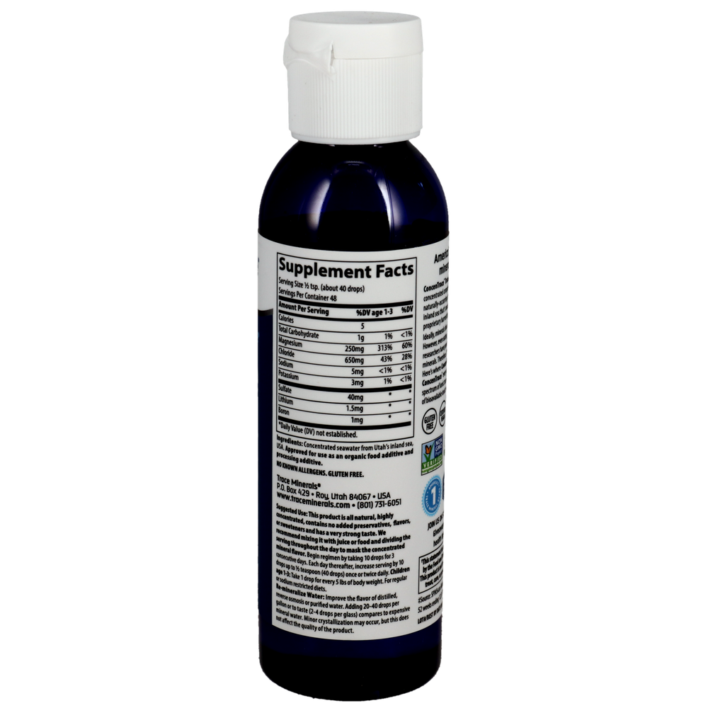 ConcenTrace® Trace Mineral Drops is an all natural mineral concentrate that’s made by using ConcenFlo™, Trace Minerals Research's proprietary harvesting process. ConcenTrace® contains naturally occurring ionic trace minerals from the Great Salt Lake with 99% sodium removed.