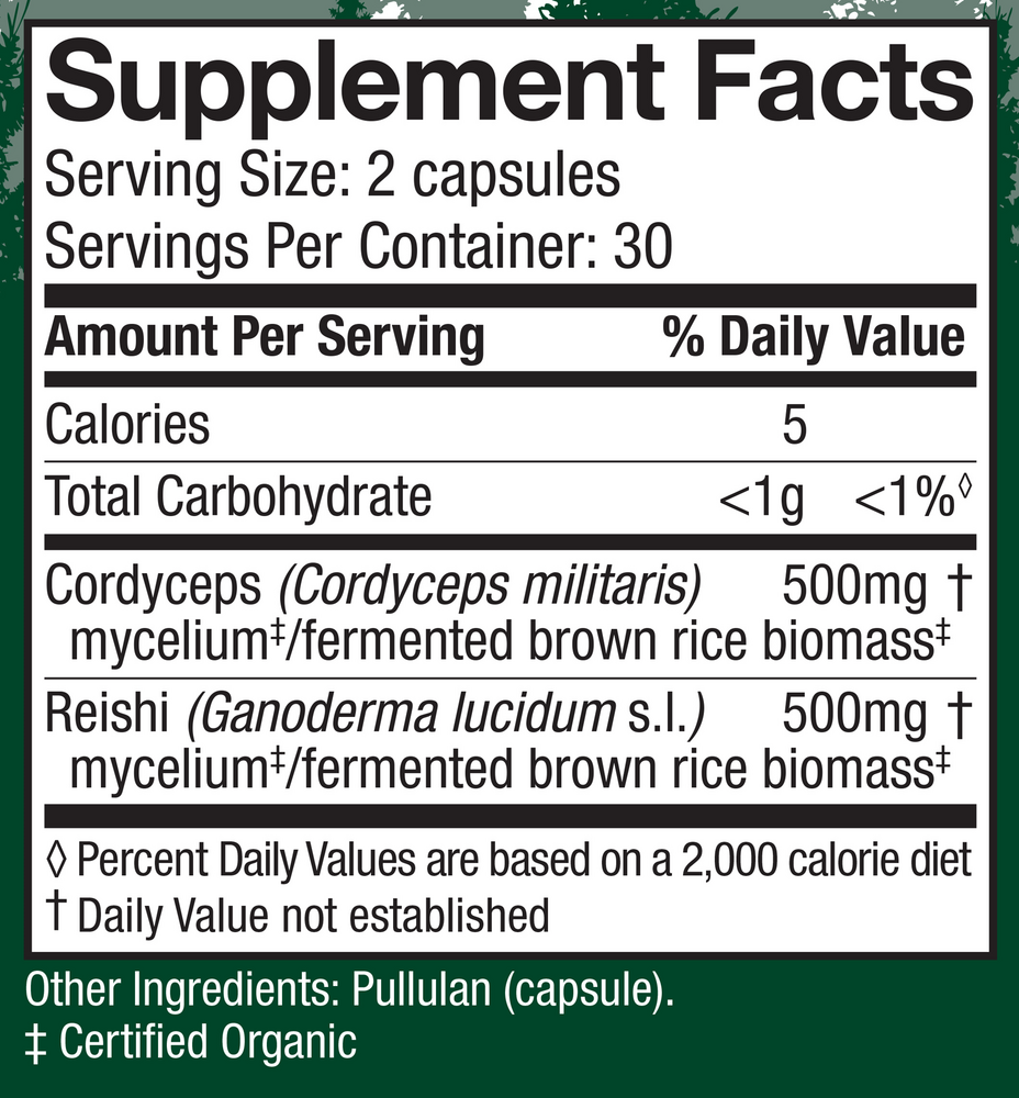 • A blend of 50% Cordyceps and 50% Reishi per serving