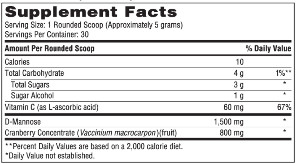 Mannose (D-Mannose) is a sugar monomer that helps maintain urinary tract health.† It binds undesirable microorganism cell wall lectins preventing colonization of the urinary tract mucosa and encouraging prompt excretion through the urine.*