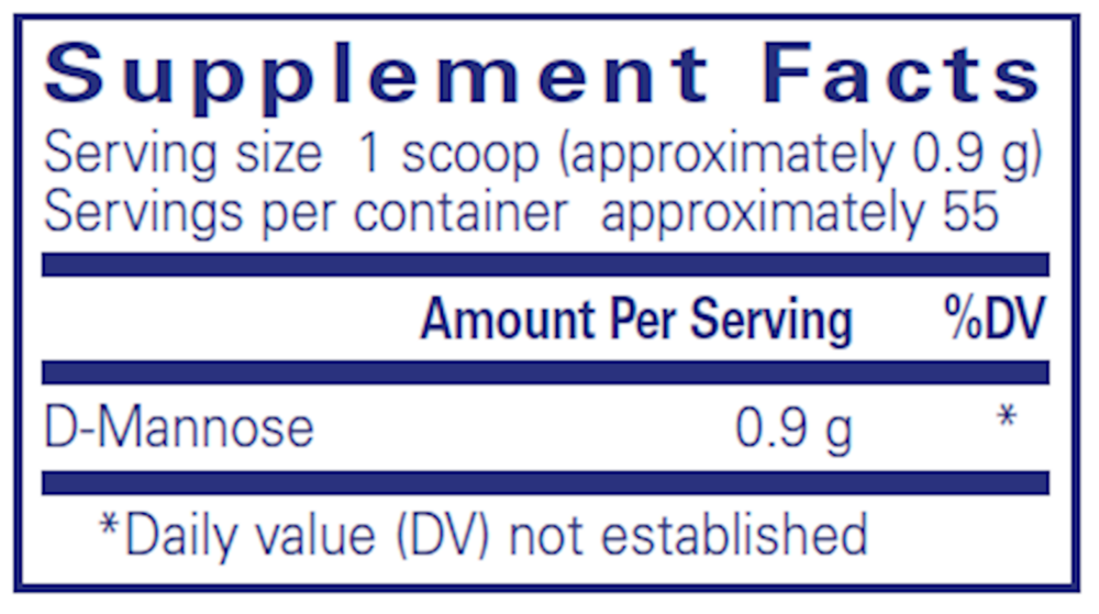 D-Mannose is a simple sugar found naturally in cranberries and pineapples. It is metabolized in small amounts, the remainder of which is excreted via the urine. As it is flushed out of the body, D-mannose maintains a healthy environment for the mucosal surface of the urinary tract.*
