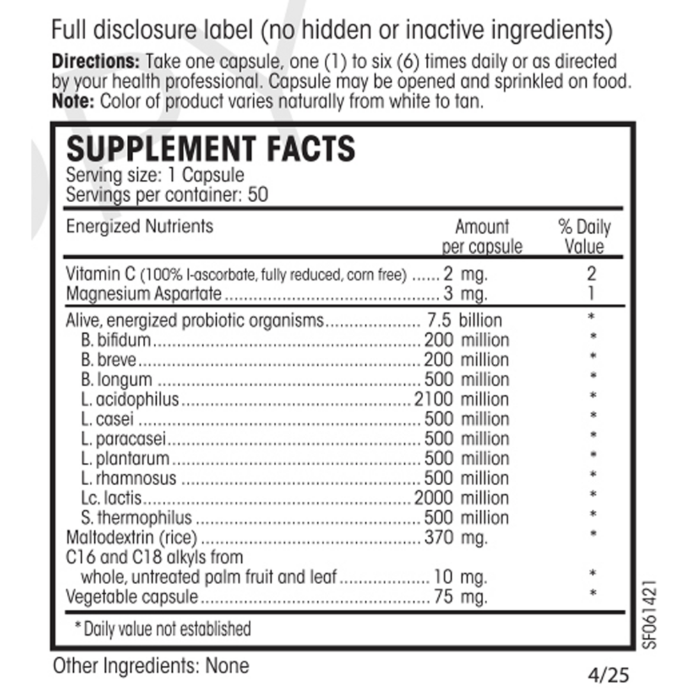 Fact: 5 billion peak-harvested 10-strain microorganisms per capsule that support comprehensive intestinal support.