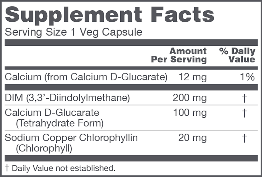 Protocol For Life Balance® DIM 200 plus CDG 100 promotes healthy hormone metabolism by supporting your body’s normal detoxification processes.* The featured ingredient, diindolylmethane (DIM), is a phytochemical that’s a metabolite of certain compounds found in cruciferous vegetables such as broccoli, Brussels sprouts, and cabbage. We’ve also included calcium D-glucarate (CDG) to support the glucuronidation process, an important mechanism of detoxification, aiding in the elimination of certain environmental toxins from the body.*