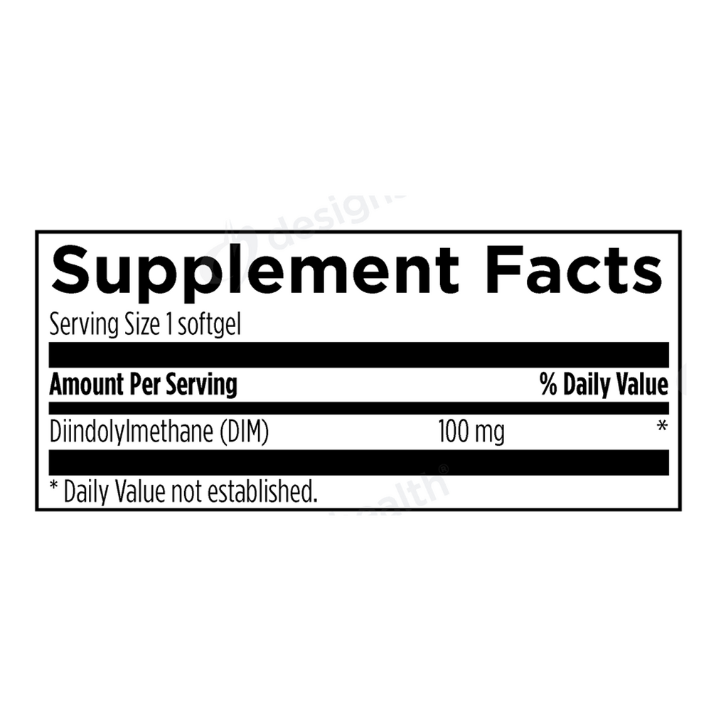 DIM-Evail™ provides 100 mg per softgel of diindolylmethane (DIM), a compound that helps to support healthy estrogen metabolism.* Due to its crystalline structure, absorption of DIM is minimal when given orally. For this reason, DIM-Evail™ has been manufactured utilizing the proprietary Designs for Health Evail™ process, which improves the absorption of DIM. This process utilizes a proprietary blend of MCT oils, non-soy derived lecithin, and vitamin E without the use of potentially harmful surfactants.