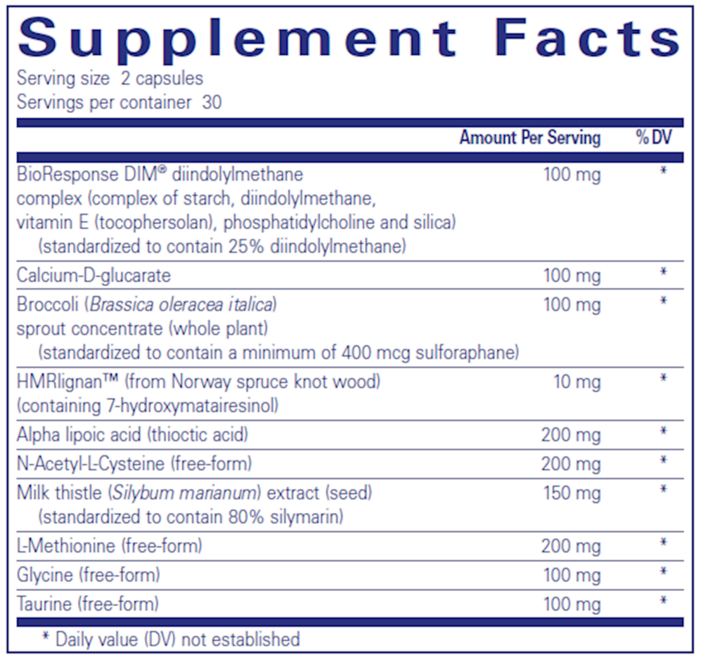 DIM Detox promotes healthy cell cycle function and hormone metabolism to support the liver's natural detoxification process. DIM Detox includes ingredients like broccoli sprout concentrate to promote phase II detoxification pathways and healthy cell metabolism.‡