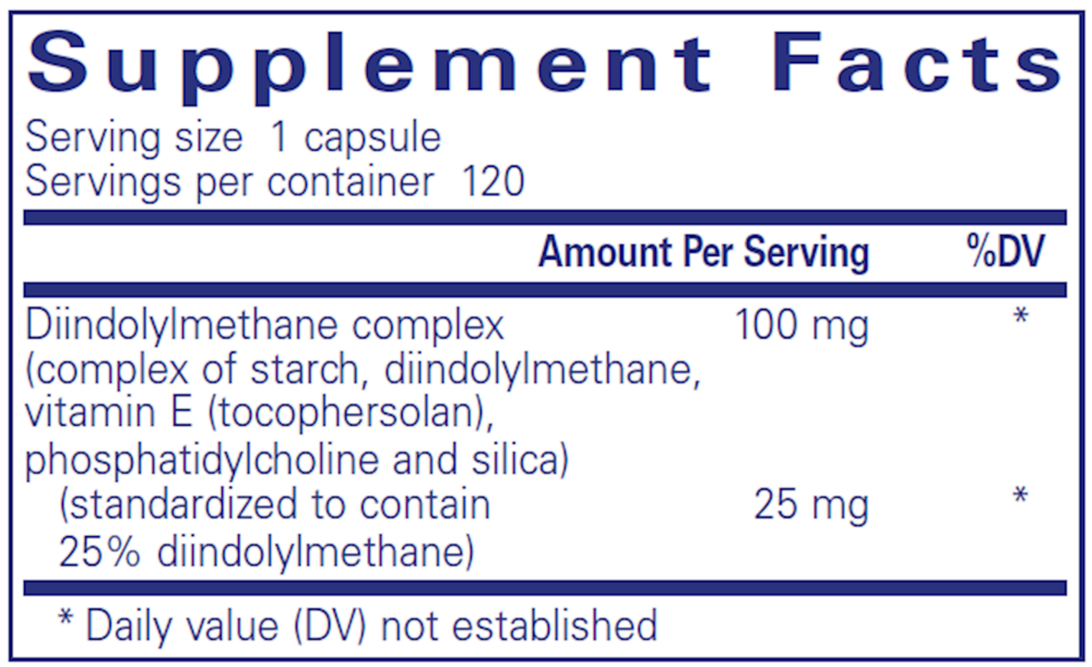 DIM-PRO® 100 contains BioResponse DIM® (diindolylmethane complex). Diindolylmethane is a metabolite of indole-3-carbinol (I3C). Both are found naturally in cruciferous vegetables like broccoli, kale and brussels sprouts. Upon contact with gastric acid in the stomach, I3C is converted to a number of active compounds, predominantly diindolylmethane. Research indicates that diindolylmethane supports healthy cell cycle function and signal transduction to maintain breast, cervical and prostate cell health. In a double-blind, randomized clinical trial, BioResponse DIM® revealed potential support for maintaining the function of healthy breast cells. Another randomized placebo-controlled crossover trial found that it promoted statistically significant breast comfort. Furthermore, an additional double-blind randomized clinical trial with 52 women found that BioResponse DIM® supported cervical cell health. Diindolylmethane in its pure form is highly insoluble. Patented, microencapsulated BioResponse DIM® has been specially developed for enhanced-absorption. This form may be more supportive than I3C in cases of low gastric acidity.*