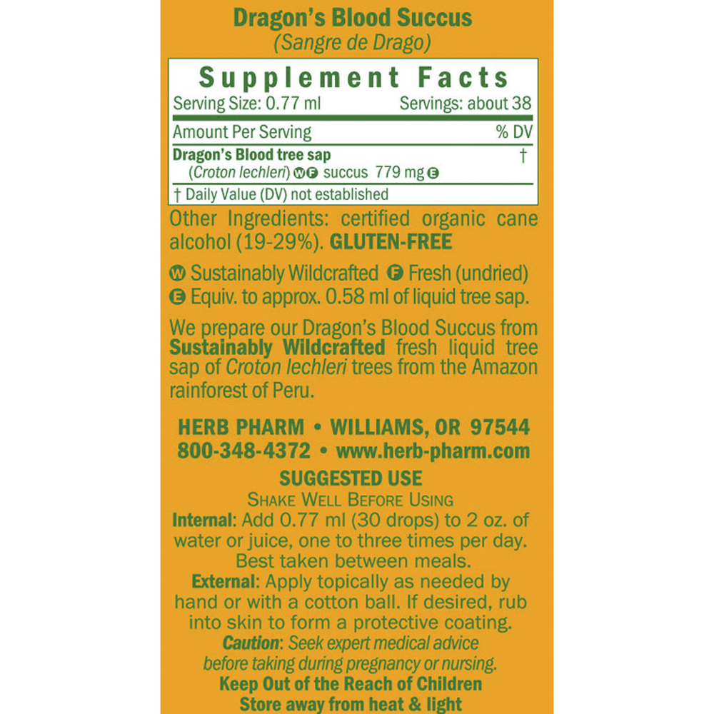 Herb Pharm prepares their Dragons Blood Succus from Sustainably Wildcrafted fresh liquid tree sap of Croton lechleri trees from the Amazonian rainforests of Peru. The pure, reddish sap is pressed from the trees and is then preserved with certified organic alcohol.