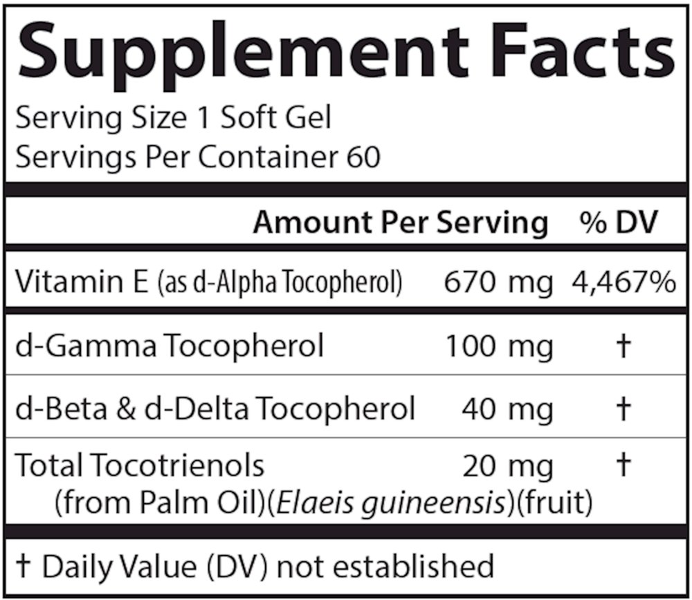 • 1,000 IU (670 mg) of vitamin E per soft gel