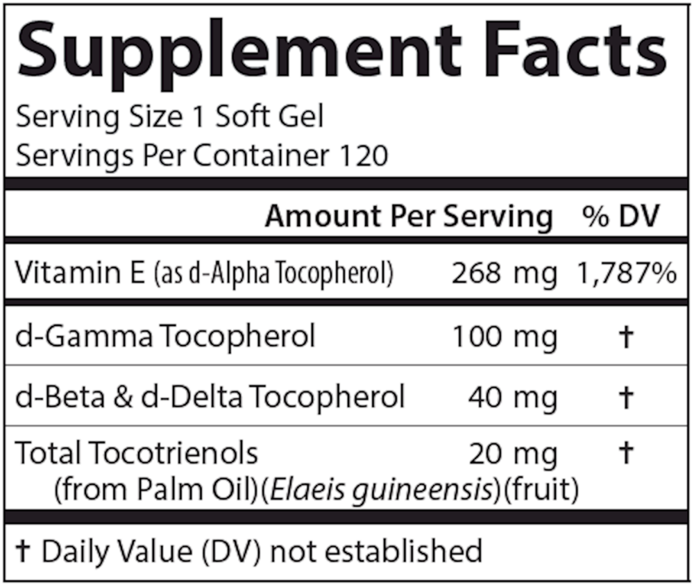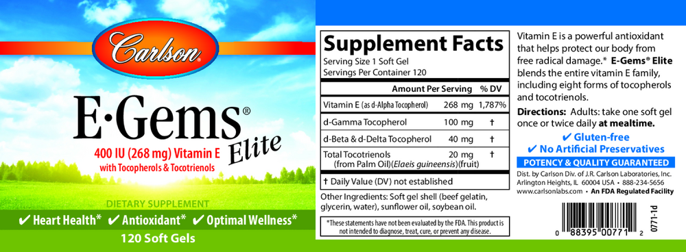 E-Gems® Elite 400 IU (268 mg) is an exclusive blend of the entire vitamin E family, including eight forms of tocopherols and tocotrienols. Vitamin E offers many health benefits and plays an important role in cardiovascular health and protecting the body from free radical damage.*