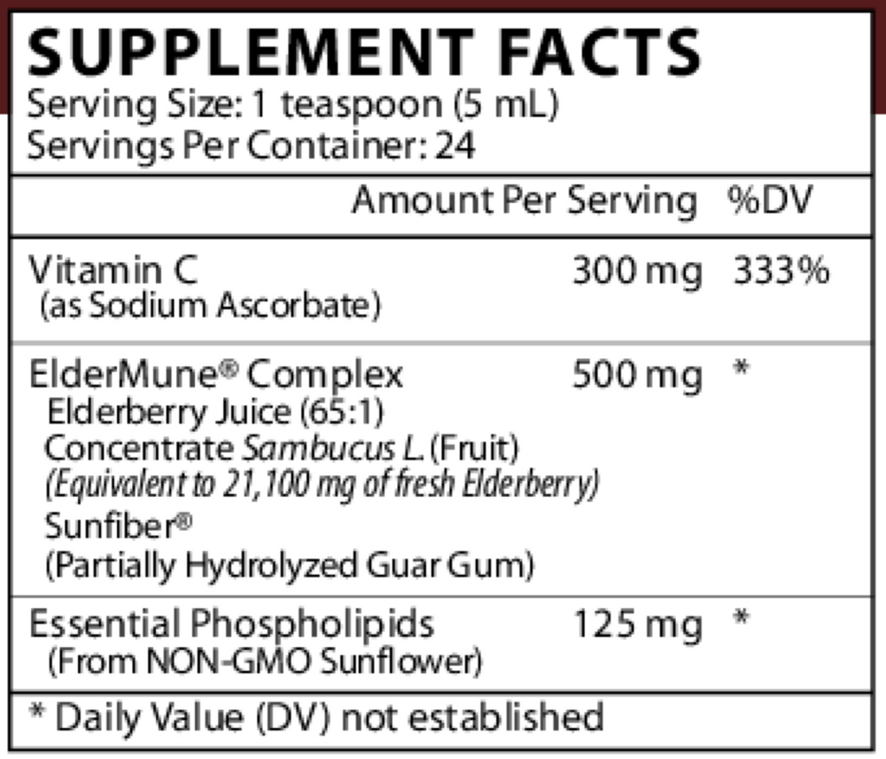 Elderberry+ contains a potent Black Elderberry Juice 65:1 Concentrate, Vitamin C, and Sunfiber® for optimal immune support, in nano-encapsulated liposomal liquid form. Sunfiber®, a soluble, prebiotic dietary fiber, has synergistic effects on digestibility shown to enhance the absorption of nutrients.*