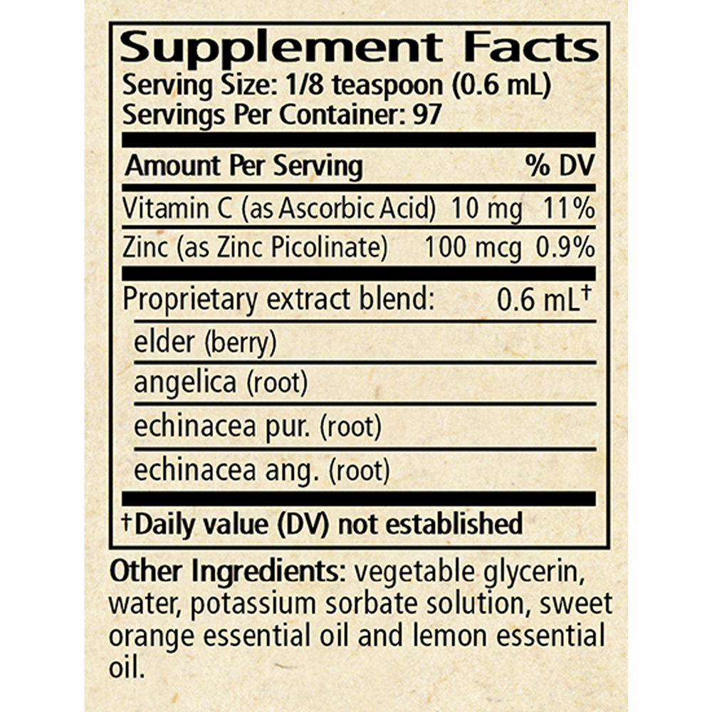 Elderberry syrup with the added benefit of echinacea, vitamin C, and zinc for broad spectrum immune support. Promotes normal healthy immune and respiratory system function.