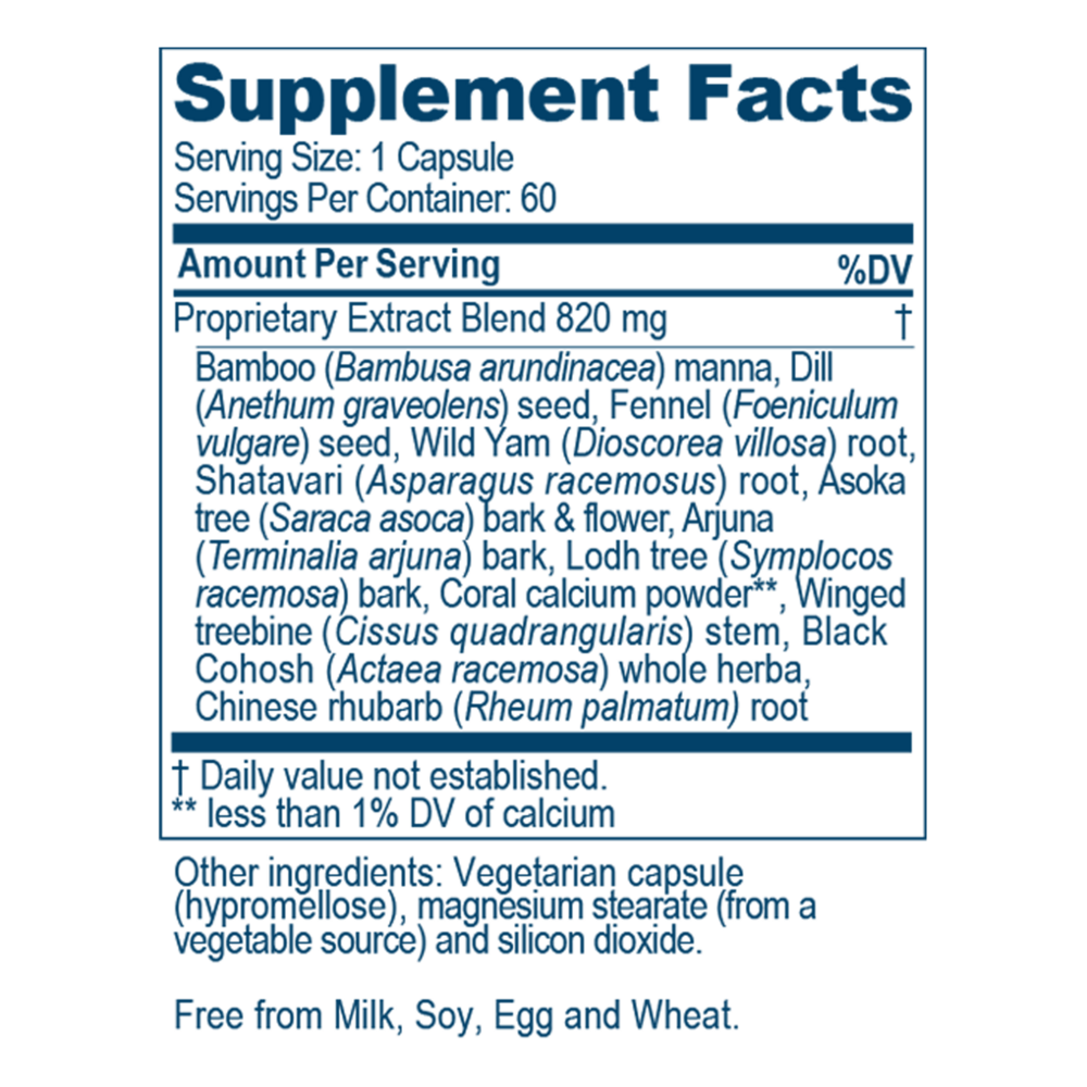 Menopause Support*• Supports Hormonal Balance During Menopause - Formulated with Shatavari and Wild Yam, this Ayurvedic supplement supports hormonal balance and overall wellness during menopause.*• Supports Energy and Vitality - Shatavari, a trusted adaptogen, helps promote natural energy levels and supports women’s vitality and hormonal balance.*• Promotes Heart Health - Arjuna supports cardiovascular wellness by helping maintain healthy circulation and heart rhythm during menopausal transitions.*• Hot Flash Support - Black cohosh offers natural cooling support to ease hot flashes and promote comfort throughout menopause.*• Ayurvedic Integrity –Ancient wisdom meets modern science in every carefully doctor crafted formula.