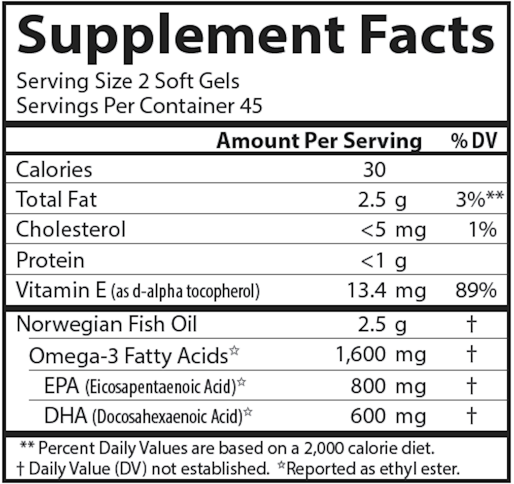 • 1,600 mg of omega-3s per serving | Lemon-flavored soft gels