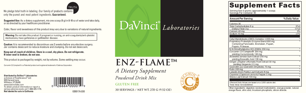 ENZ-FLAME™ is a dietary supplement that combines 13 ingredients that work synergistically to support comfort, mobility and flexibility.* ENZ-FLAME™ has been designed to help relieve general aches and pains associated with physical activity and over-exertion making it exceptional for every day support.*