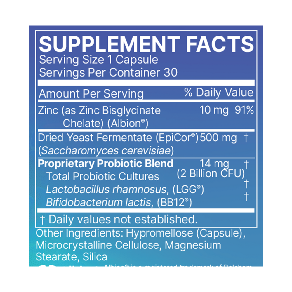 EpicDefense Immunobiotic Formula for Daily Immune Health and Respiratory Comfort* EpicDefense is a revolutionary probiotic and postbiotic blend designed for year-round immune resilience. This advanced formula optimizes immune balance, fortifies mucosal defenses, boosts antibodies and key immune-signaling cytokines, and promotes exceptional nasal and respiratory comfortāempowering patients to thrive through daily and seasonal challenges.* Next-Gen Immunobiotic Powerhouse EpicDefense is a science-backed, next-generation immunobiotic formula for daily immune health and respiratory comfort.* This next-level formula contains extensively documented and clinically studied proprietary immunobiotics, LGGĀ® and BB-12Ā® probiotics, EpiCorĀ® postbiotic, and ultra-absorbable AlbionĀ® Mineralsā zinc bisglycinate, chelated for superior bioavailability. Powered by cutting-edge science, EpicDefense promotes a healthy immune system for daily and seasonal wellness. Redefine patientsā immune care with EpicDefense, the new standard in next-generation immunobiotic support.* Key Benefits Provides daily, year-round immune health support* Optimizes immune balance & mucosal immune function* Supports nasal comfort* Boosts key antibodies & immune-signaling cytokines* Promotes balanced inflammatory responses* LGGĀ® & BB-12Ā® help with the duration & degree of respiratory discomfort* LGGĀ® & BB-12Ā® encourage beneficial gut bacteria colonization* LGGĀ® & BB-12 support microflora balance to maintain a healthy microbiome* LGGĀ® adheres to intestinal mucus, promoting beneficial immune regulation* BB-12Ā® promotes increased production of specific antibodies* EpiCorĀ® promotes a healthy immune response during seasonal challenges* Chelated zinc bisglycinate supports NK (Natural Killer) cell function* Gut-Powered Immunity from EpicDefense A whopping 70-80% of immune cells reside in the gut. The intestinal microbiota, epithelial layer, and mucosal immune system work in harmony to drive robust health. EpicDefense harnesses this connection, leveraging advanced immunobiotics to optimize local gut immunity and promote a healthy overall immune response for comprehensive wellness.* EpicDefense delivers powerful immune support through its synergistic blend of advanced, immune-supporting ingredients. Each ingredient brings targeted immune support, working together to optimize daily immune wellness and resilience.* Immunobiotics Lactobacillus LGGĀ®, Bifidobacterium BB-12Ā®, and EpiCorĀ® (Saccharomyces cerevisiae) are extensively, scientifically, and clinically studied immunobiotics that are specific probiotic strains or related microbial components (like postbiotics) that interact with the immune system to promote balanced immune responses and overall health.* Unlike general probiotics, which target the gut and affect other systemic health concerns, immunobiotics can regulate immune function, such as: Supporting mucosal defenses* Supporting antibody production* Promoting beneficial gut bacteria that influence immunity* Discover the next evolution in human microbiome scienceāimmunobioticsā and the new standard in immune wellnessāEpicDefense.