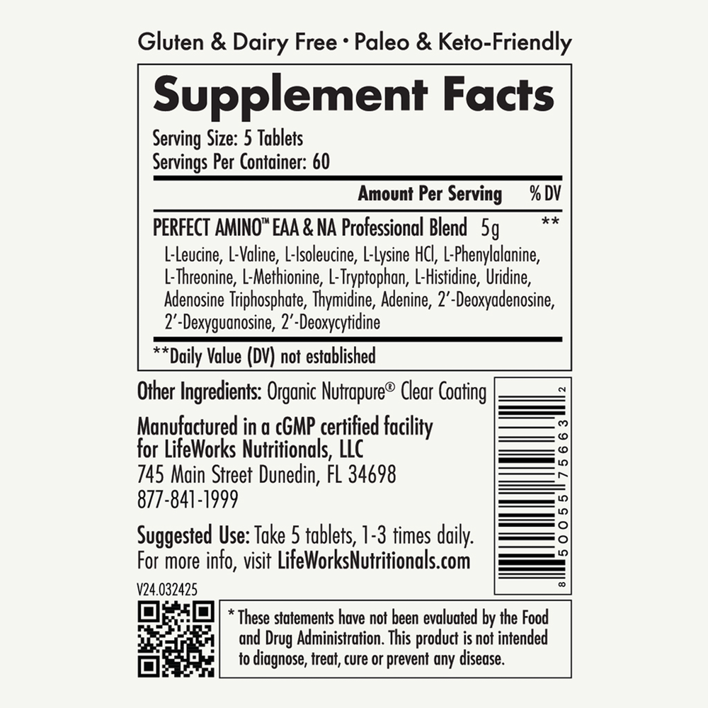 Essential Amino is composed of pure essential amino acids, the building blocks of protein, in a form and ratio that is up to 99% utilized, but without the caloric impact and without breaking a fast. It is further enhanced with nucleic acid building blocks, the foundations of our DNA and RNA, helping to direct the process of protein synthesis at the genetic level and support genetic health and performance.* And it’s absorbed in approximately 23-30 minutes. Essential Amino is 100% vegan, and free of gluten, soy, and dairy.