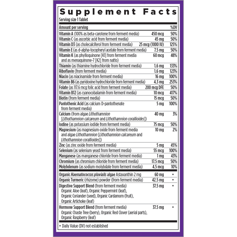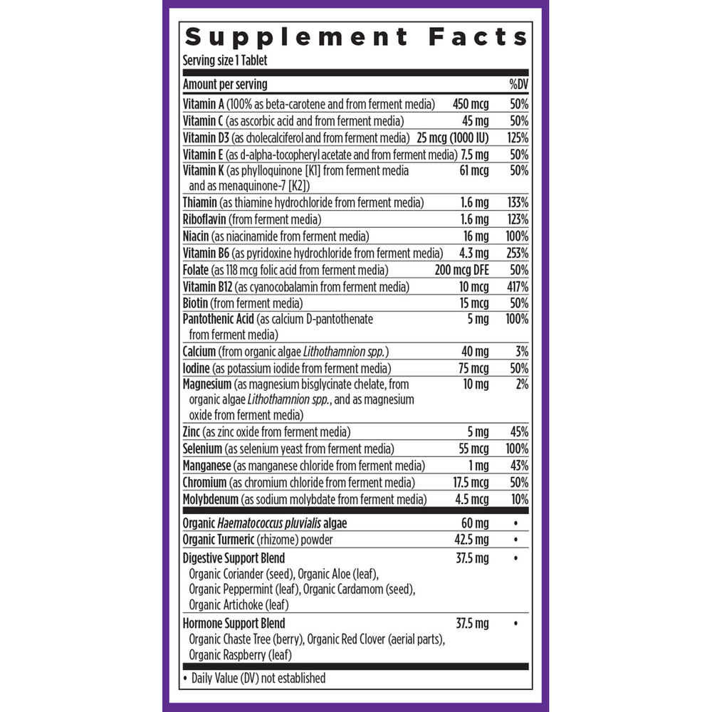 Other ingredients: Culture media (organic soy flour, organic gum acacia, organic Saccharomyces cerevisiae, organic maltodextrin, organic orange peel powder, organic molasses, organic carrot powder, organic alfalfa powder, lactic acid bacteria [L. acidophilus, B. bifidum and L. rhamnosus], papain [deactivated], bromelain [deactivated] and organic safflower oil), organic gum acacia, silicon dioxide, lac resin, carnauba wax, mixed tocopherols and magnesium oxide.