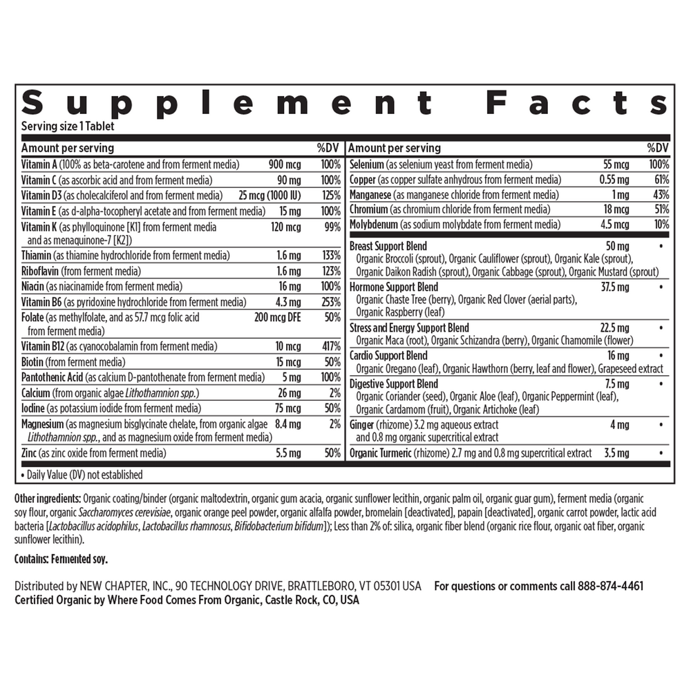 Other Ingredients: Organic coating/binder (organic maltodextrin, organic gum acacia, organic sunflower lecithin, organic palm oil, organic guar gum),, ferment media (organic soy flour, organic Saccharomyces cerevisiae, organic orange peel powder, organic alfalfa powder, bromelain [deactivated], papain [deactivated], organic carrot powder, lactic acid bacteria [Lactobacillus acidophilus, Lactobacillus rhamnosus, Bifidobacterium bifidum]), Less than 2% of: silica, organic fiber blend (organic rice flour, organic oat fiber, organic sunflower lecithin)