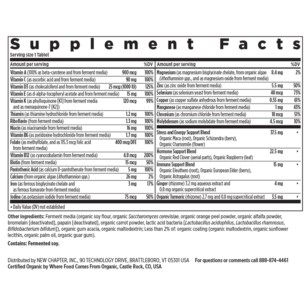 Other Ingredients: Organic coating/binder (organic maltodextrin, organic gum acacia, organic sunflower lecithin, organic palm oil and organic guar gum), ferment media (organic soy flour, organic Saccharomyces cerevisiae, organic orange peel powder, organic alfalfa powder, bromelain [deactivated], papain [deactivated], organic carrot powder, lactic acid bacteria [Lactobacillus acidophilus, Lactobacillus rhamnosus, and Bifidobacterium bifidum]), silica, organic fiber blend (organic rice flour, organic oat fiber and organic sunflower lecithin), sodium alginate, pea starch and organic gum acacia.