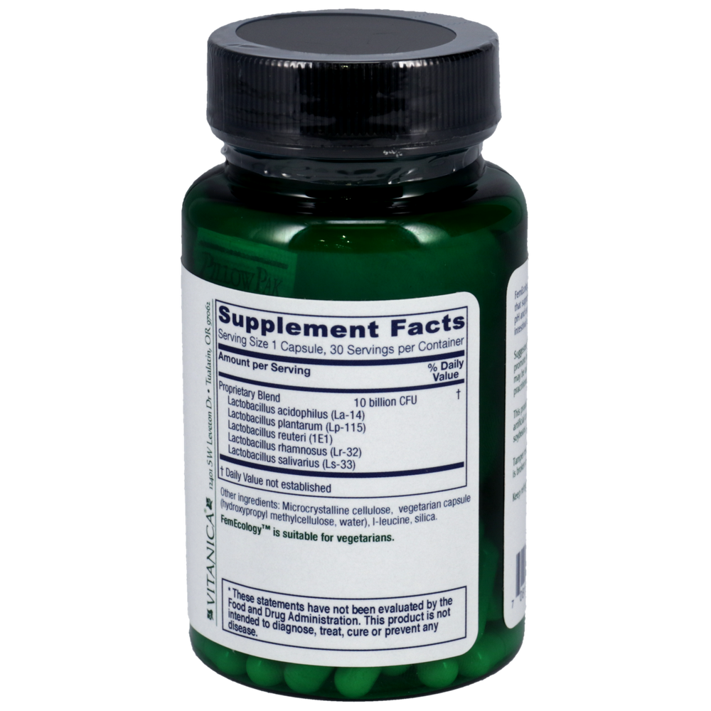 FemEcology is a blend of probiotic species that specifically support the maintenance of healthy vaginal immunity, pH and ecology of microflora; equally beneficial for overall intestinal health maintenance as well.*