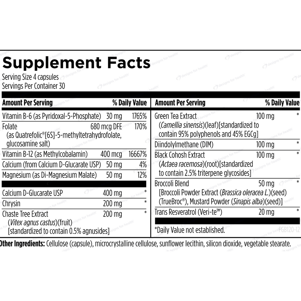 FemGuard+Balance™ supports classic herbal hormonal balancing in the form of vitex, polygonum and black cohosh, along with DIM and chrysin for protection and support of beneficial estrogen aromatase activity. Calcium-D-glucarate promotes the proper elimination of excess estrogens. Resveratrol and EGCg from green tea are included for maximum antioxidant protection. Vitamins B6, B12, and folate promote proper cell diff erentiation. Magnesium and calcium are also included to help support bone and hormone health.*