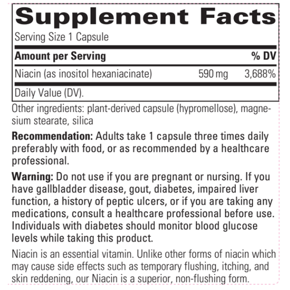 This supplement provides inositol hexaniacinate, a form of niacin (vitamin B3) used in Europe for more than 30 years.