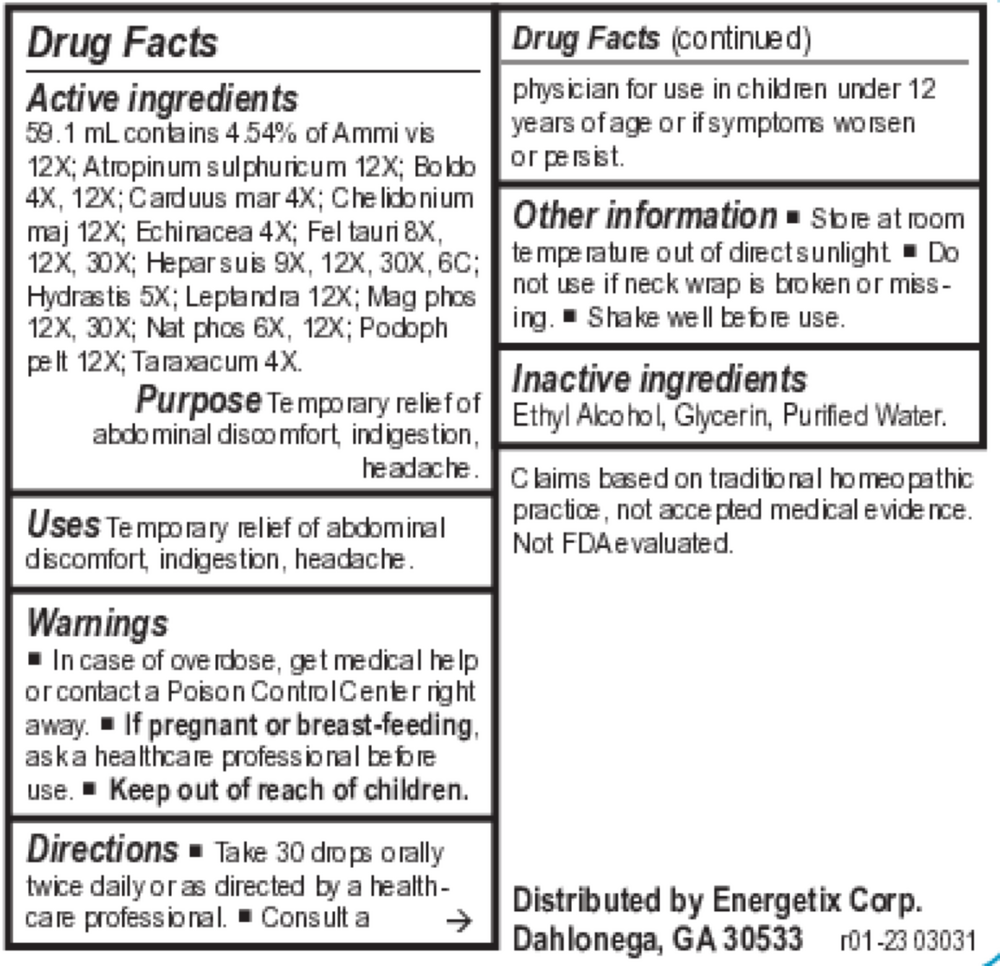 For symptoms such as abdominal discomfort, pain in the right shoulder, belching, sour taste in mouth, headaches, nausea, and constipation.‡