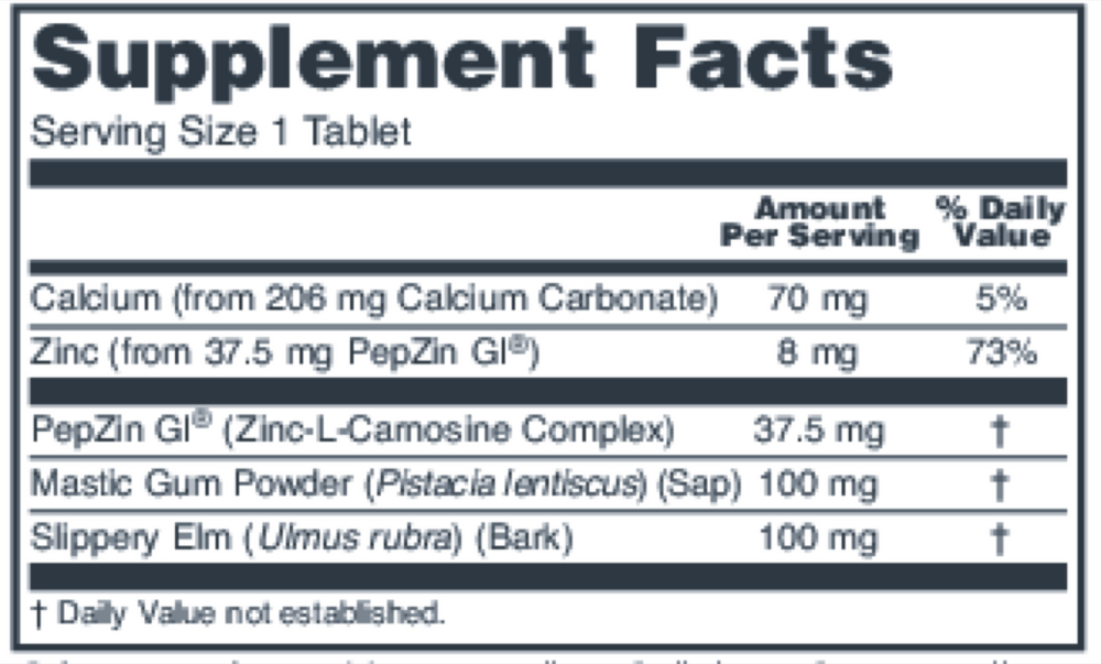 GI Guard™ is a formulation for GI health using the clinically validated ingredient, PepZin GI®, a proprietary form of zinc complexed with carnosine.* PepZin GI® is slowly absorbed in the stomach, where it promotes normal mucous secretion, combats free radicals, and supports stable cell membranes.* PepZin GI® thereby helps to maintain the integrity of the stomach lining and its proper immune responses to the typically harsh gastric environment.* Numerous clinical studies have demonstrated that PepZin GI® can help to support GI health and promote gastric comfort.* PepZin GI® is a registered trademark of Hamari Chemicals, Ltd.