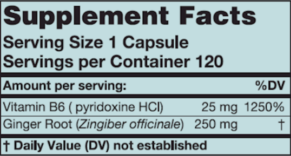 Maintaining digestive system comfort is a challenge during pregnancy, while traveling in cars and boats, or after receiving treatments. Ginger root is a pungent and traditionally popular botanical for helping prevent disturbances of this type and has been the subject of several successful clinical trials as well. Ginger possesses other useful properties related to helping block production of certain prostaglandins and other eicosanoids. Pyridoxine (vitamin B6) has long been used during pregnancy for maintaining digestive system comfort.*